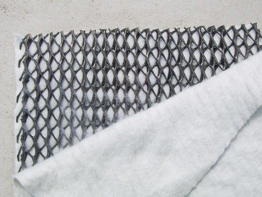 三維復合排水網是一種新型的排水土工材料。以高密度聚乙烯(HDPE)為原料,經特殊的擠出成型工藝加工而成,具有三層特殊結構。中間筋條剛性大,縱向排列,形成排水通道,上下交叉排列的筋條形成支撐防止土工布嵌入排水通道,即使在很高的荷載下也能保持很高的排水性能。雙面粘接滲水土工布復合使用,具有“反濾--排水--透氣--保護”綜合性能,是目前理想的排水材料。